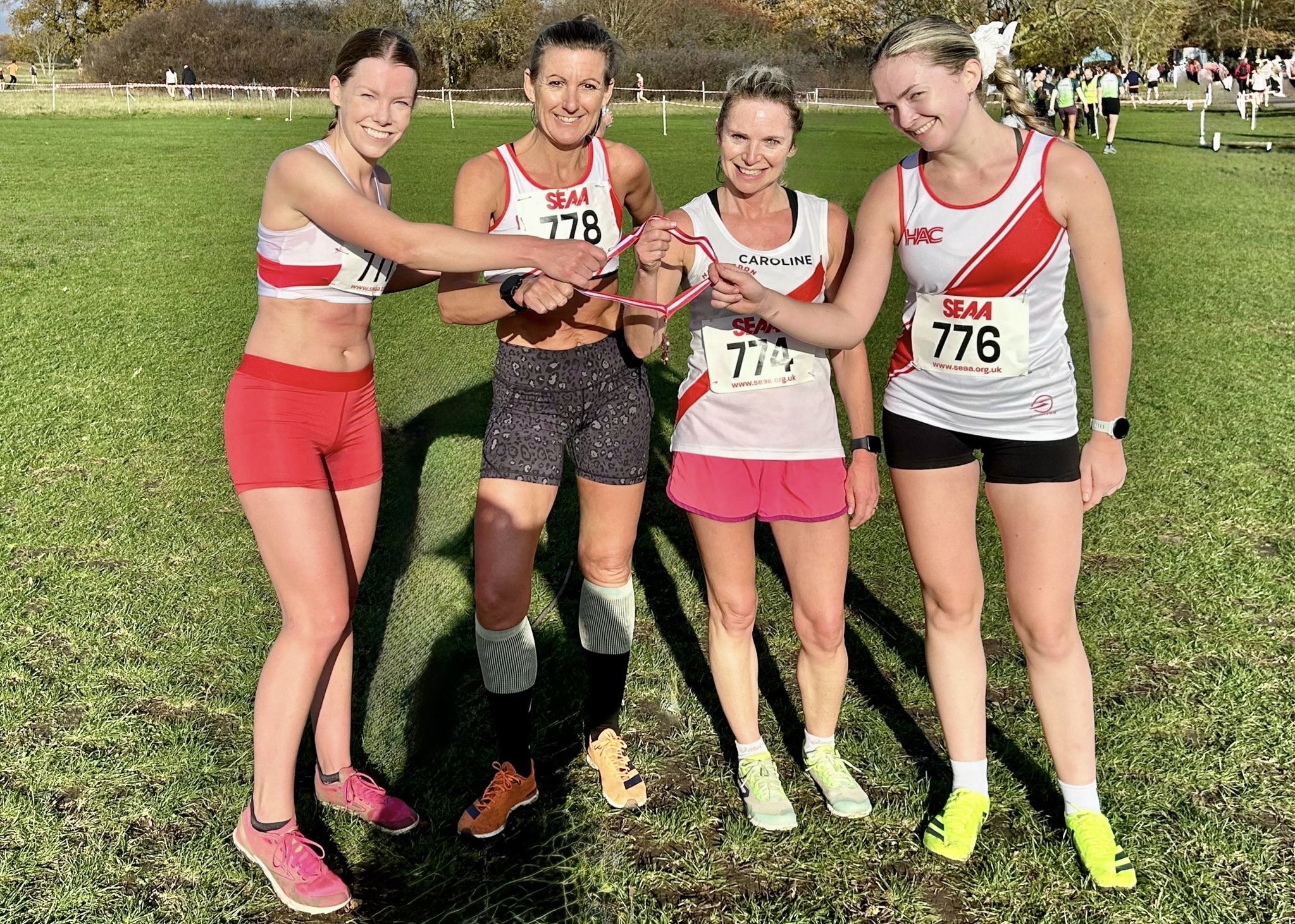 A brilliant team effort from the Hillingdon AC women at one of London’s most historic XC fixtures, with great success too, in bringing home the bronze medals after a tough 5-mile race over the classic hills and rutted grassland of Fryent Park! A strong performance from Catriona Paterson in placing 6th, in a time of 32:51. It was a triple HAC finish order, with Jessica Gaffney placing 14th, returning home in a time of 35:13. Melanie Spencer followed in 15th place, in 36:38 and in 16th was Caroline Ford, in a time of 37:08. In 23rd position was Hollie Ford in 39:39 and completing the team in 26th was Chao Cox in 40:00. The team was rewarded with a 3rd place finish, picking up the medal at the SEAA London Cross Country Championships, congratulations all!