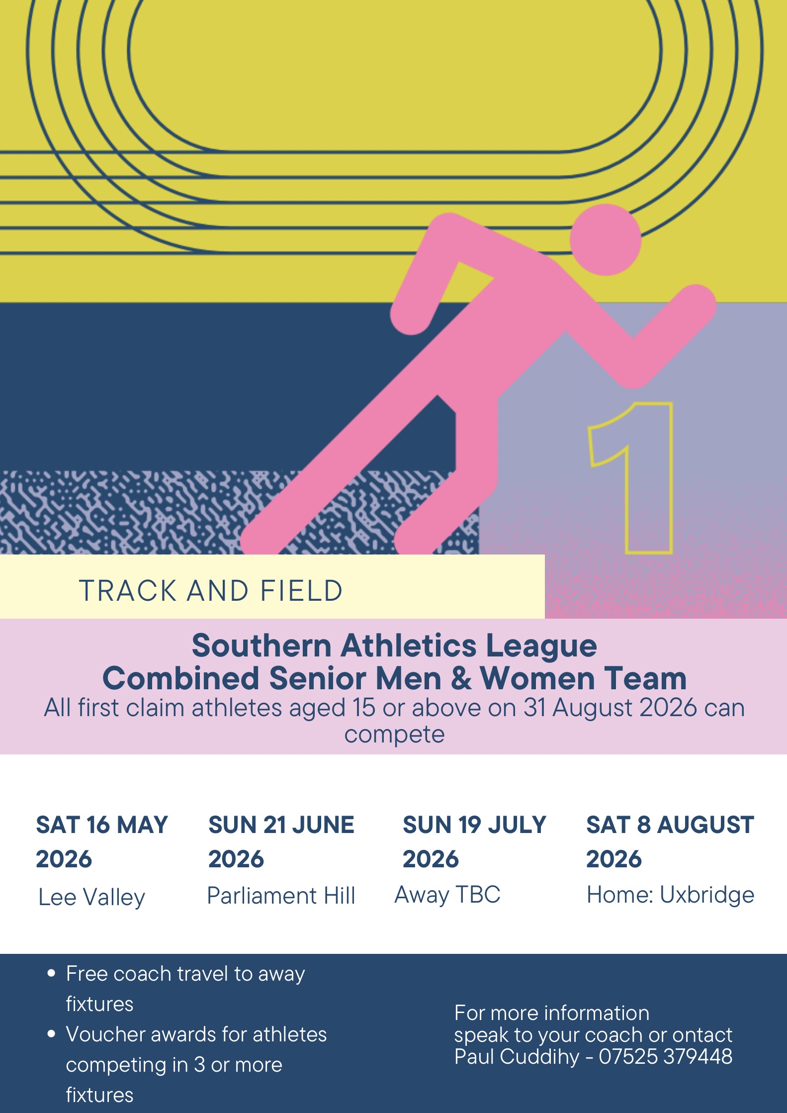 Hillingdon Athletic Club will provide free coach travel to and from away fixtures. Members who participate in 3 or more fixtures will be awarded vouchers as thanks for their commitment.