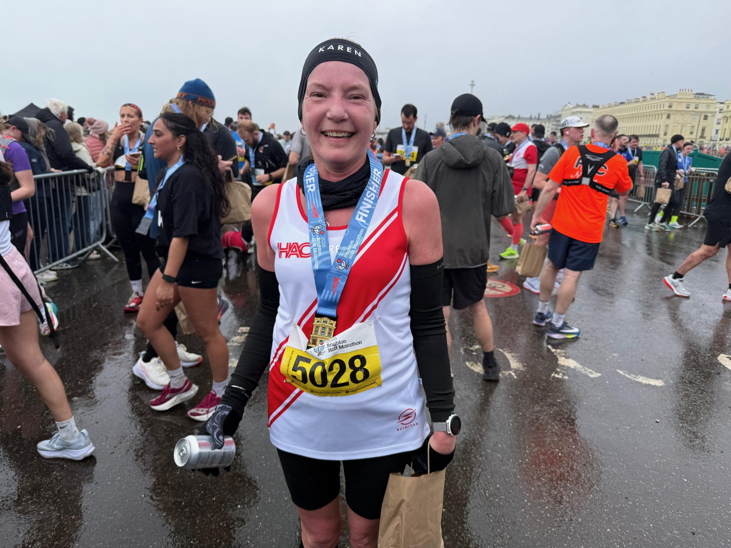 Karen O’Rourke: I’m still buzzing from a weekend away with the HAC gang of like-minded runners embracing the elements of the Brighton Half Marathon! Wonderful camaraderie, support, fun and great running in challenging conditions! Well done all, and thank you.