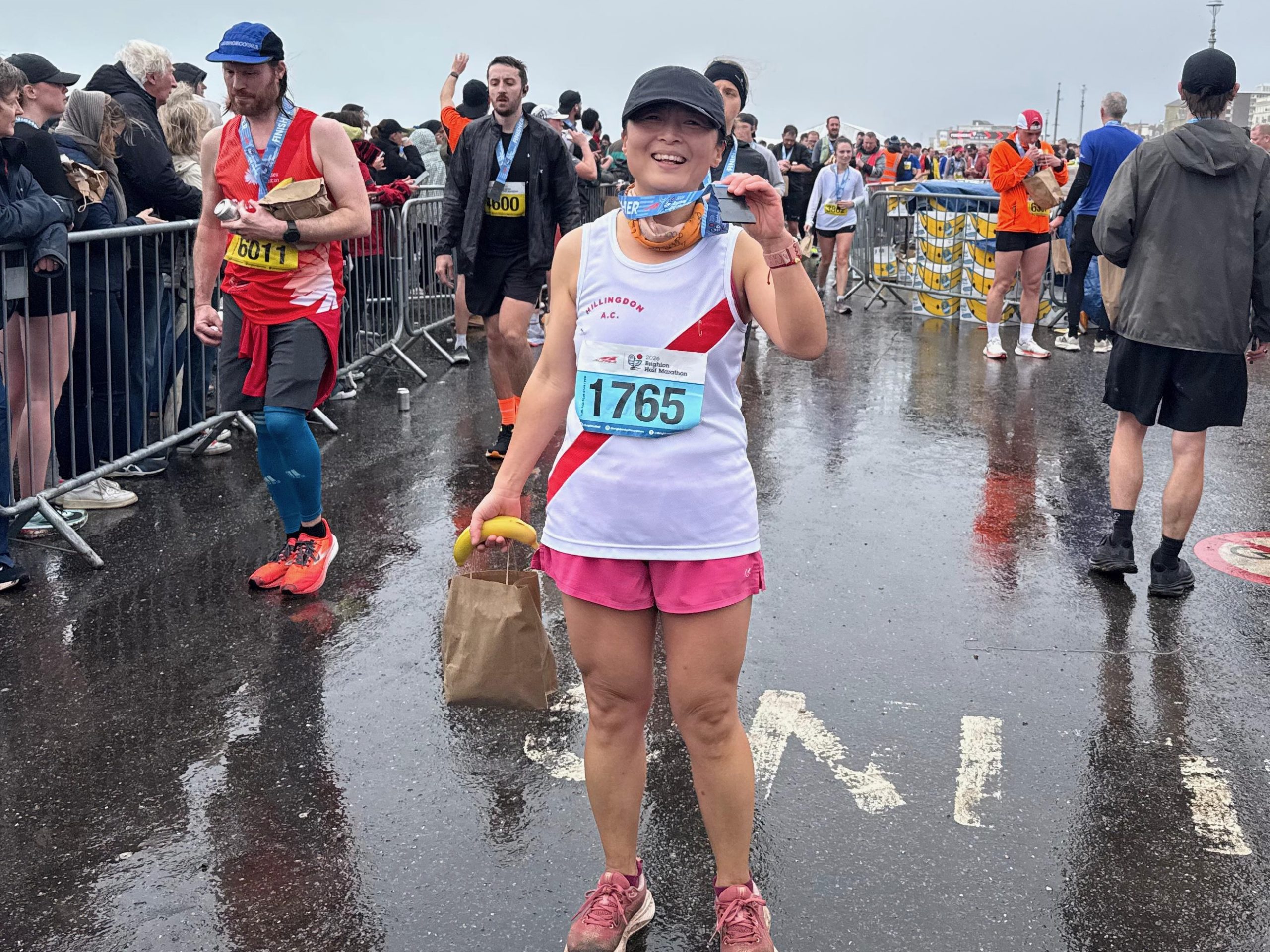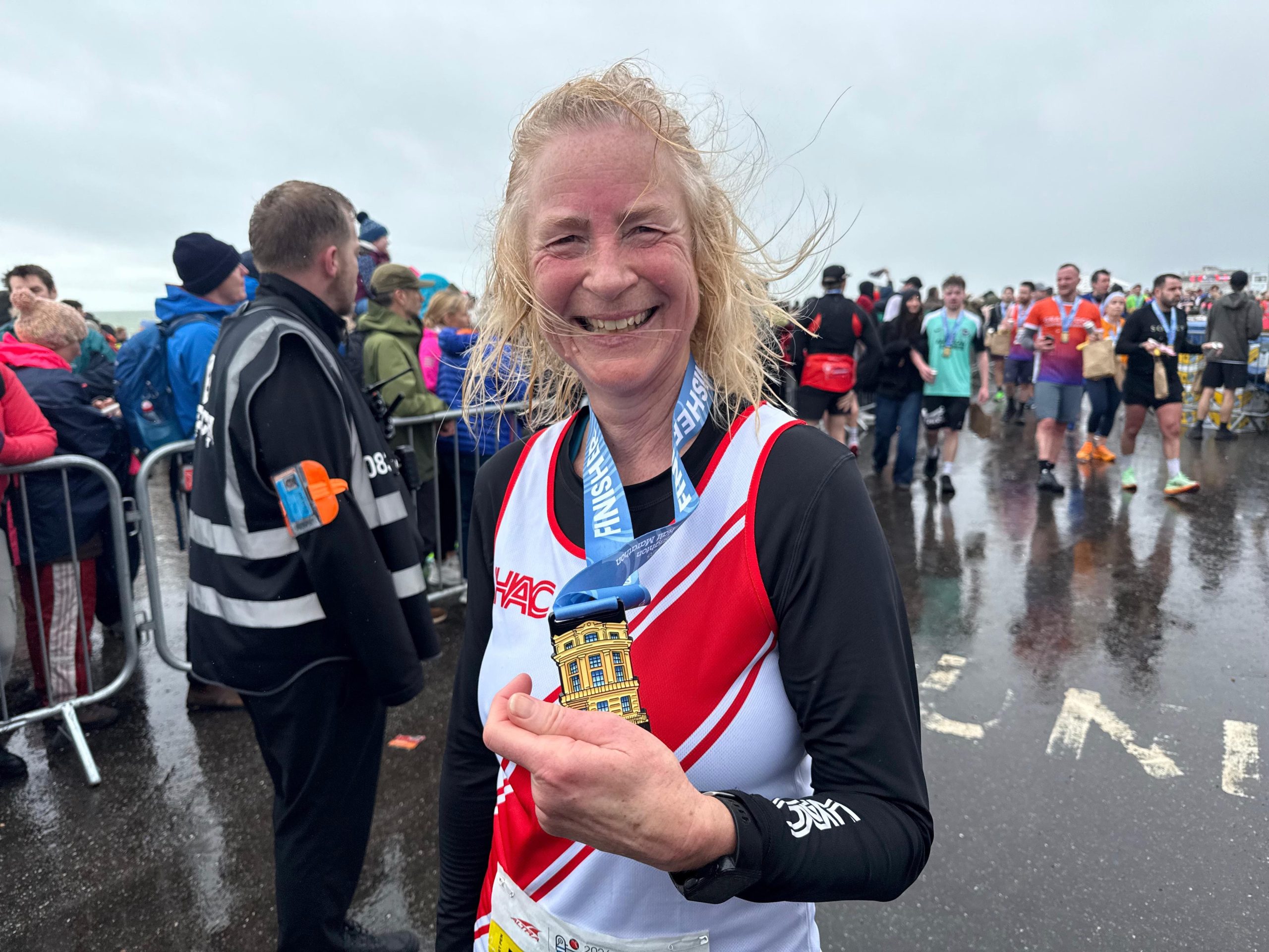 The second female in was Chloe Charles in 1hr35, who has been smashing her PBs recently following her recent Valencia marathon training. Chloe said: “Fab weekend in Brighton with team HAC! Despite the wind and rain, it was so lovely to see so many of the team running and spectating. Super pleased to achieve a half-marathon PB!”
