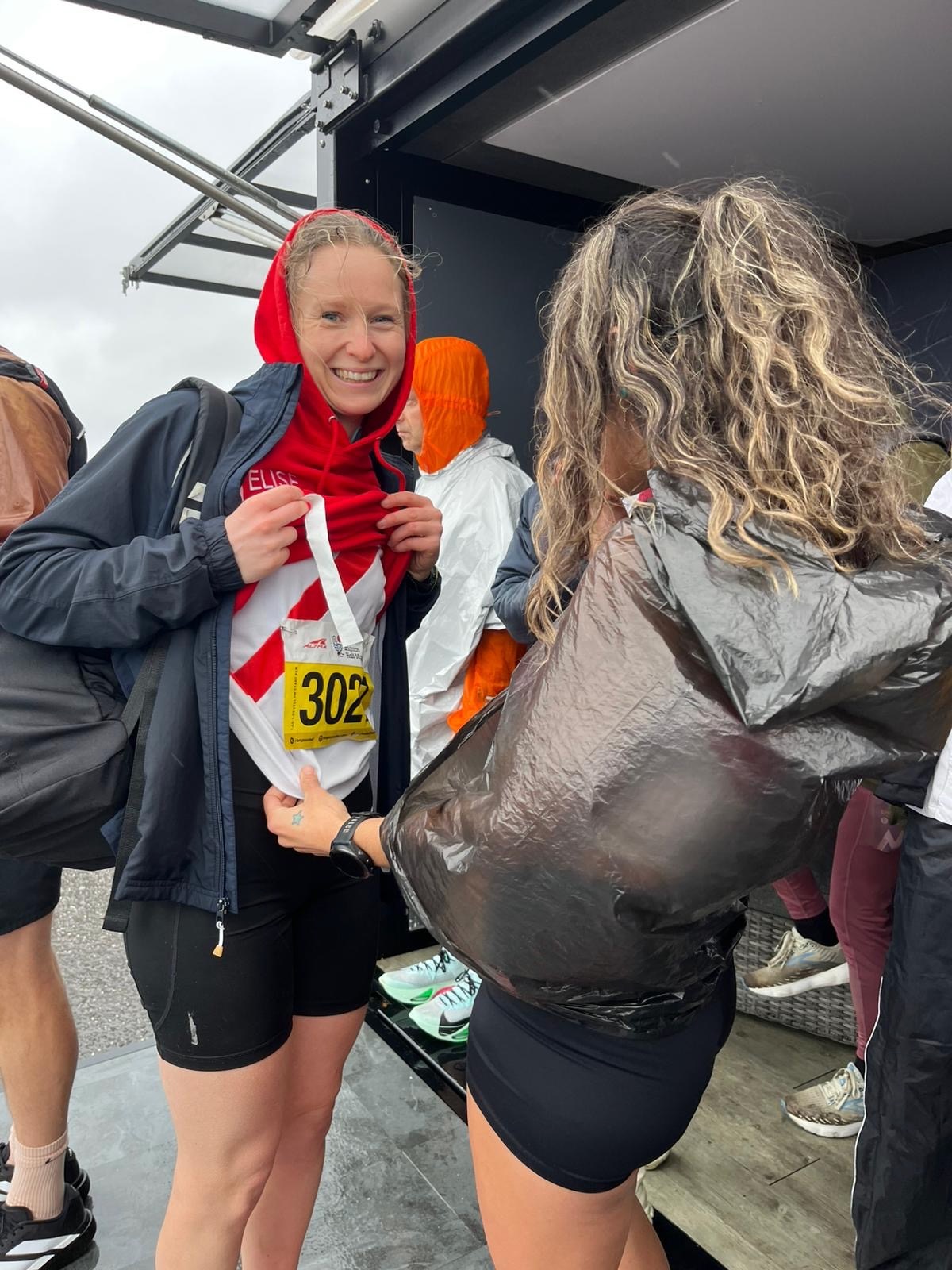 Sunday’s weather was a bit different from what was ‘advertised’ in our initial talks back last year. It was a chilly southerly wind off the coast, and we got our fair share of British drizzle! As usual, there was a bit of a scramble to get to the loo, drop off our bags, and warm up, all while trying not to freeze in our little HAC club vests!