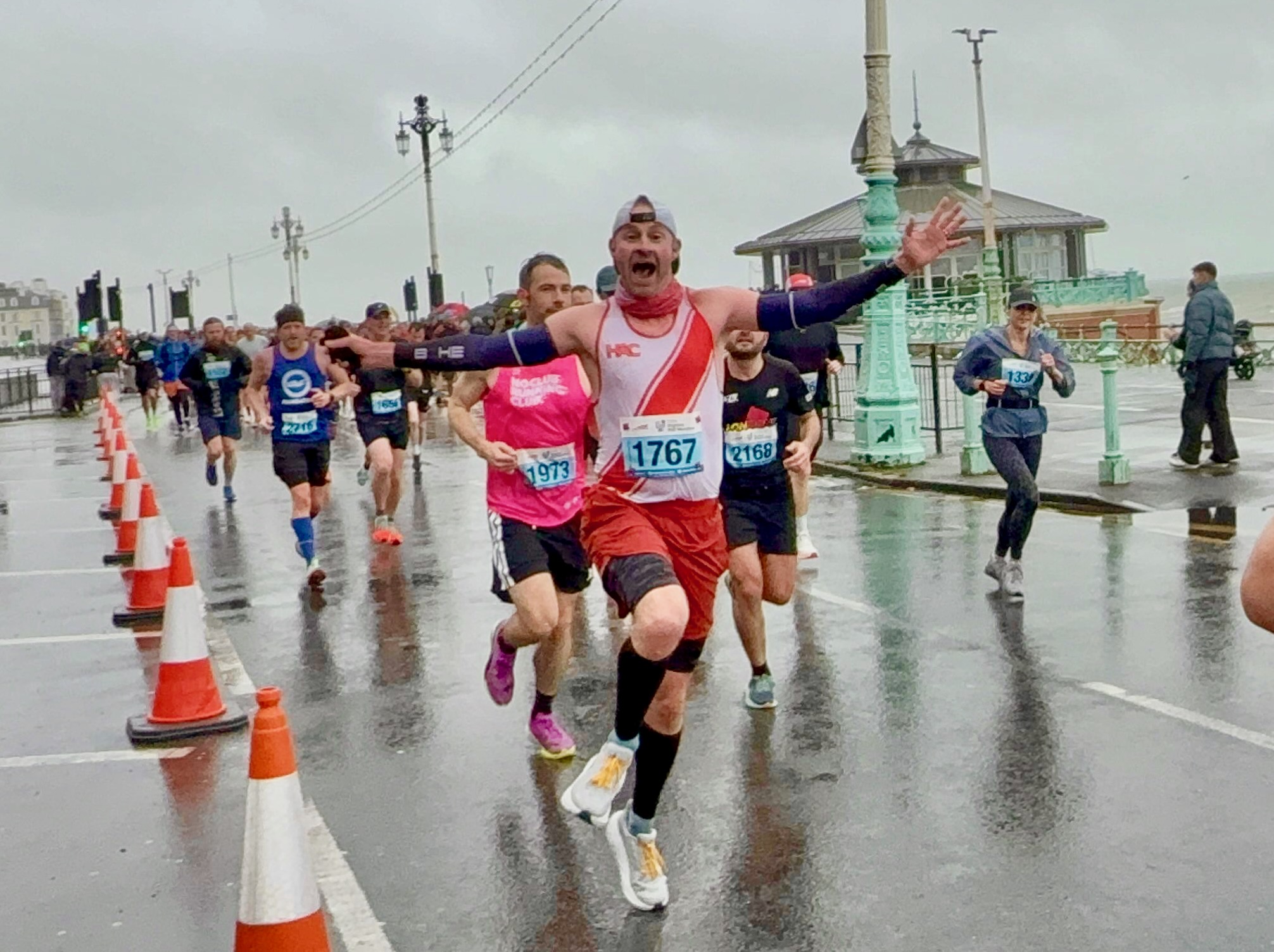 Once the race got going, we had massive support from crowds of people, including friends and family. The course followed Brighton’s famous landmarks, including the Palace Pier, Royal Pavilion, the cliff tops, Madeira Drive, the beach huts, and promenade! With a few gentle inclines, it was the headwind when heading west that was the toughest! Not the most pleasant of conditions for almost 10,000 runners running 13.1 miles!
